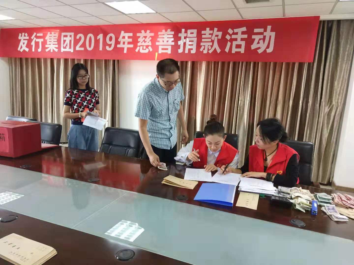 9月26日上午,河南省新華書店發(fā)行集團(tuán)在12樓會(huì)議室舉行了“迎2019鄭州慈善日”捐款活動(dòng),發(fā)行集團(tuán)領(lǐng)導(dǎo)班子成員發(fā)揮表率作用、帶頭捐款,各部門積極發(fā)動(dòng)、踴躍響應(yīng),派出代表將本部門職工的捐款帶到了活動(dòng)現(xiàn)場(chǎng)。發(fā)行集團(tuán)黨委工作部提前準(zhǔn)備、精心組織,對(duì)捐款人姓名、捐款部門和捐款人數(shù)等情況進(jìn)行了認(rèn)真登記,對(duì)捐款金額進(jìn)行仔細(xì)清點(diǎn),然后由捐款人或捐款代表依次將捐助現(xiàn)金投入到捐款箱中。經(jīng)最終合計(jì),當(dāng)天共募集善款16000余元。整個(gè)活動(dòng)氣氛溫馨,暖意融融,充分展現(xiàn)了新華人熱心公益、扶弱濟(jì)困的傳統(tǒng)美德。