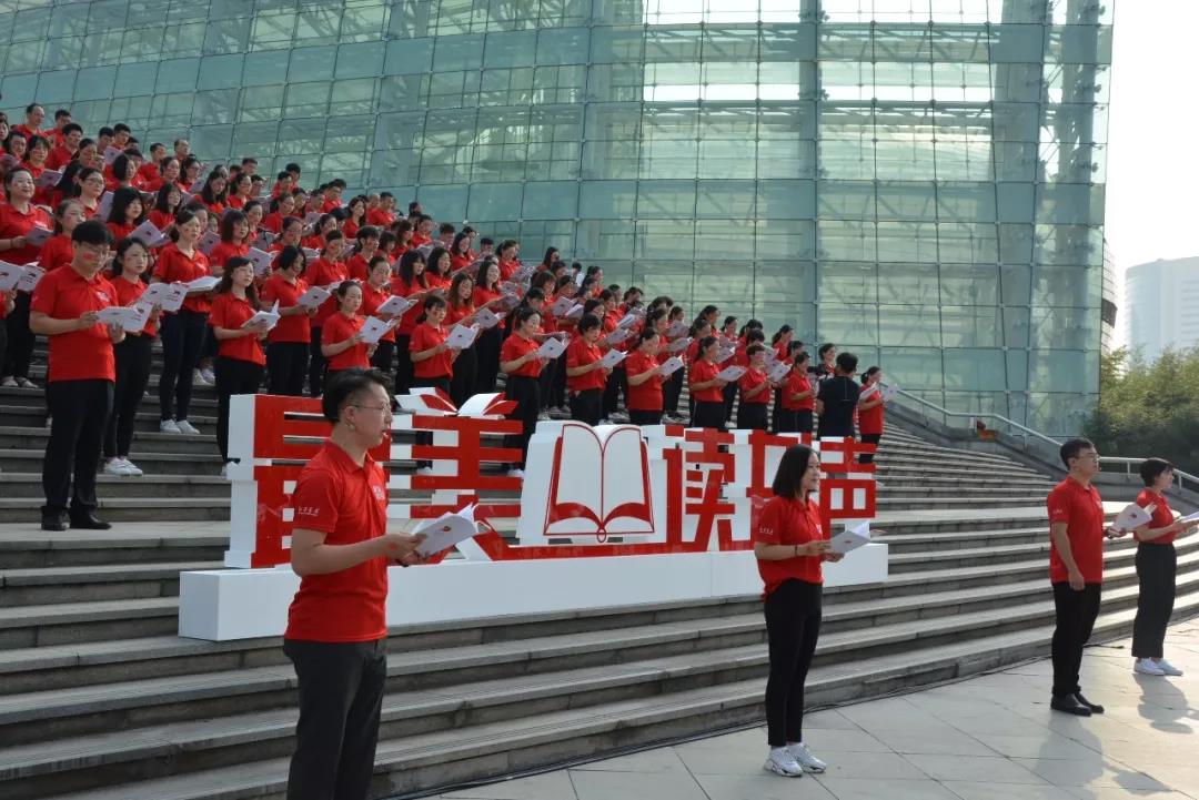 當日上午,鄭州市活動現(xiàn)場共設8個分會場。在河南省藝術中心廣場前,400多名河南省新華書店員工深情誦讀并齊聲唱響《我和我的祖國》,展現(xiàn)了身處新時代、新征程中的新華人的驕傲與自豪。