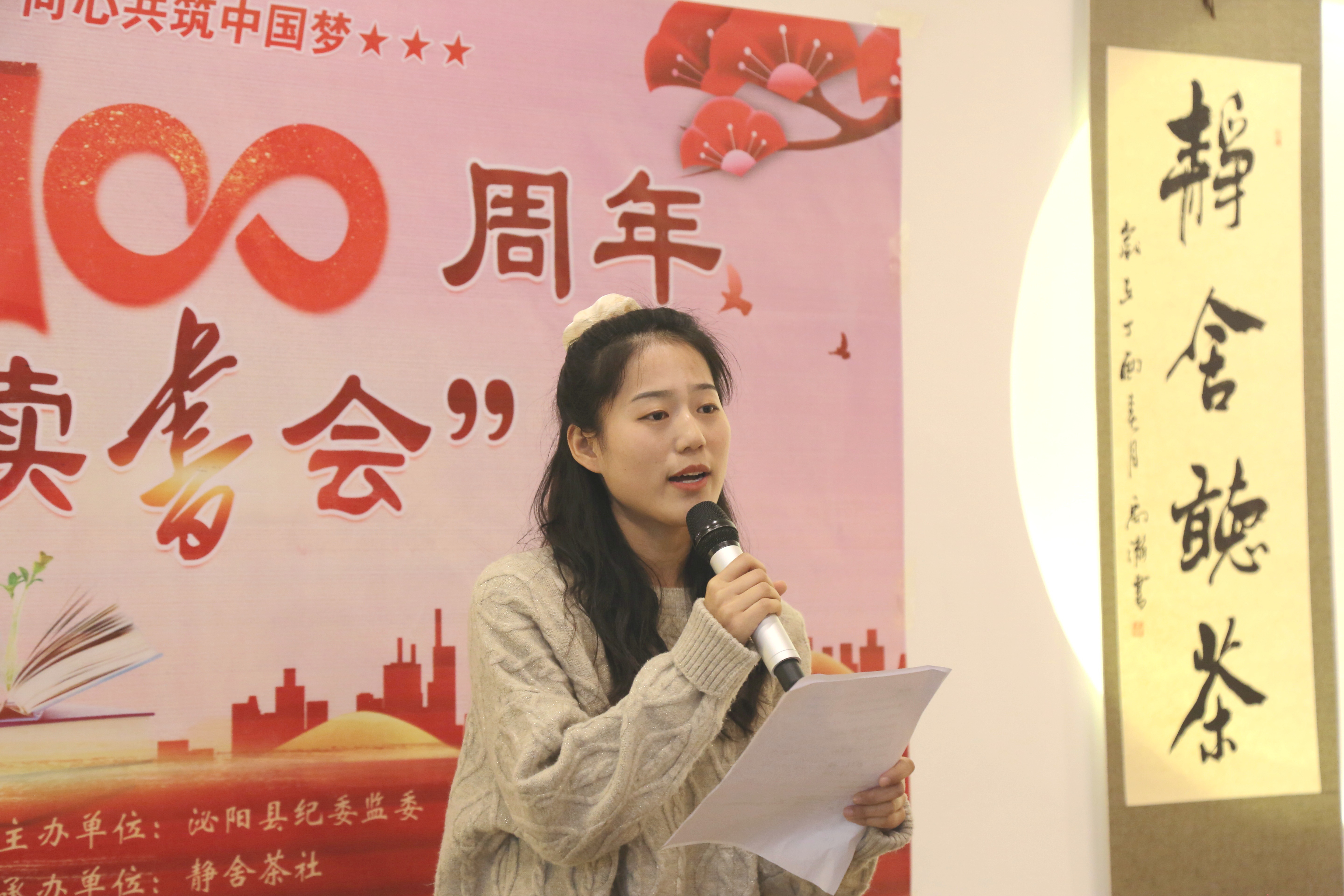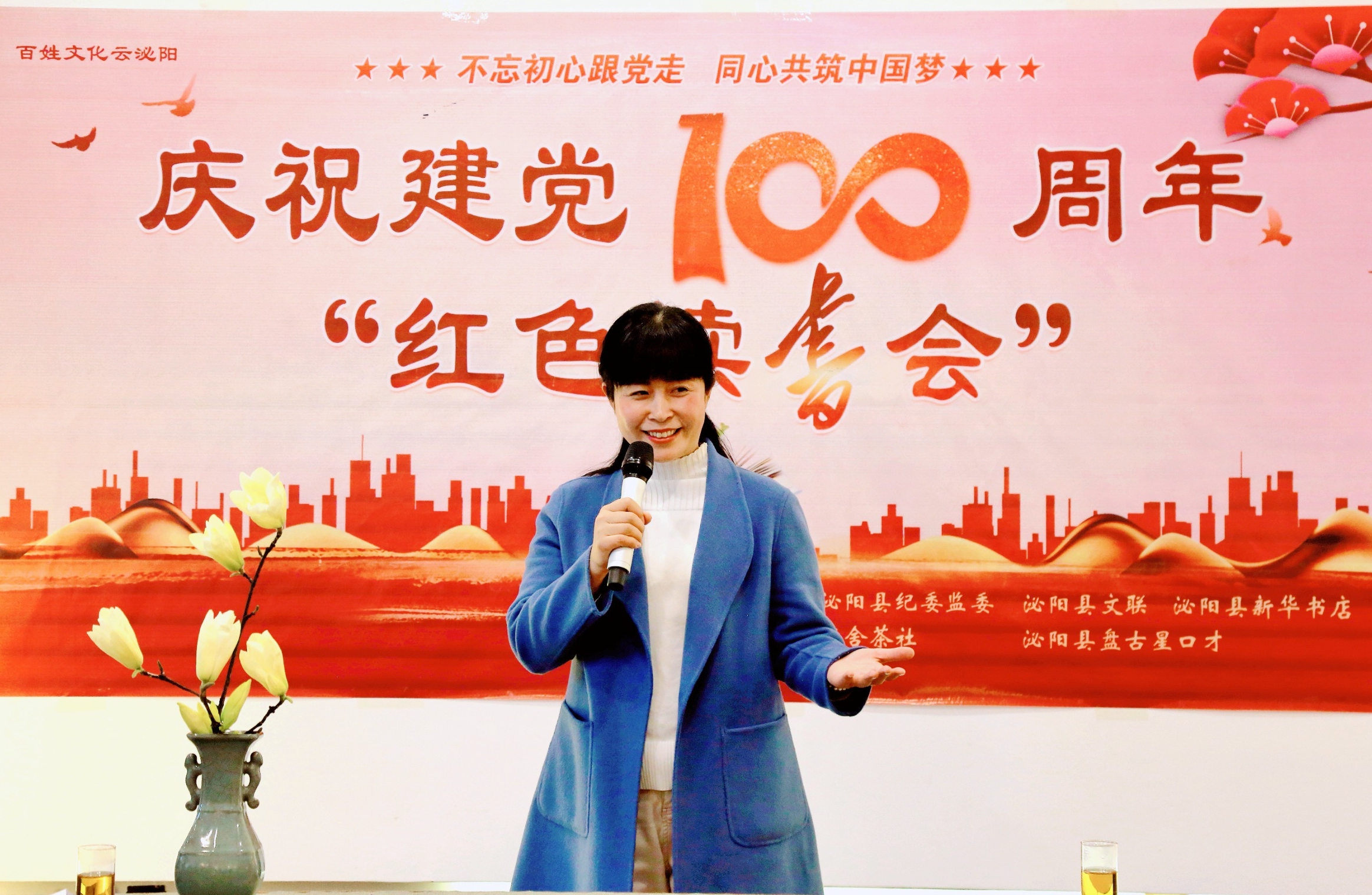 春回大地,百花盛開(kāi)。為了豐富紅色知識(shí),讀紅色經(jīng)典,堅(jiān)定“四個(gè)自信”,多讀書(shū),讀好書(shū)。3月19日,由泌陽(yáng)縣紀(jì)委監(jiān)察委、縣文聯(lián)、縣新華書(shū)店、縣電視臺(tái)、縣融媒體聯(lián)合舉辦的以“不忘初心跟黨走,同心共筑中國(guó)夢(mèng)”為主題的慶祝建黨100周年紅色讀書(shū)會(huì)在泌陽(yáng)縣“靜舍書(shū)茶社”舉行。來(lái)自不同單位的演講代表,以豐富的情感朗誦紅色經(jīng)典,講述先烈故事,大家共誦經(jīng)典、聆聽(tīng)書(shū)韻,以飽滿的熱情慶祝中國(guó)共產(chǎn)黨建黨100周年。