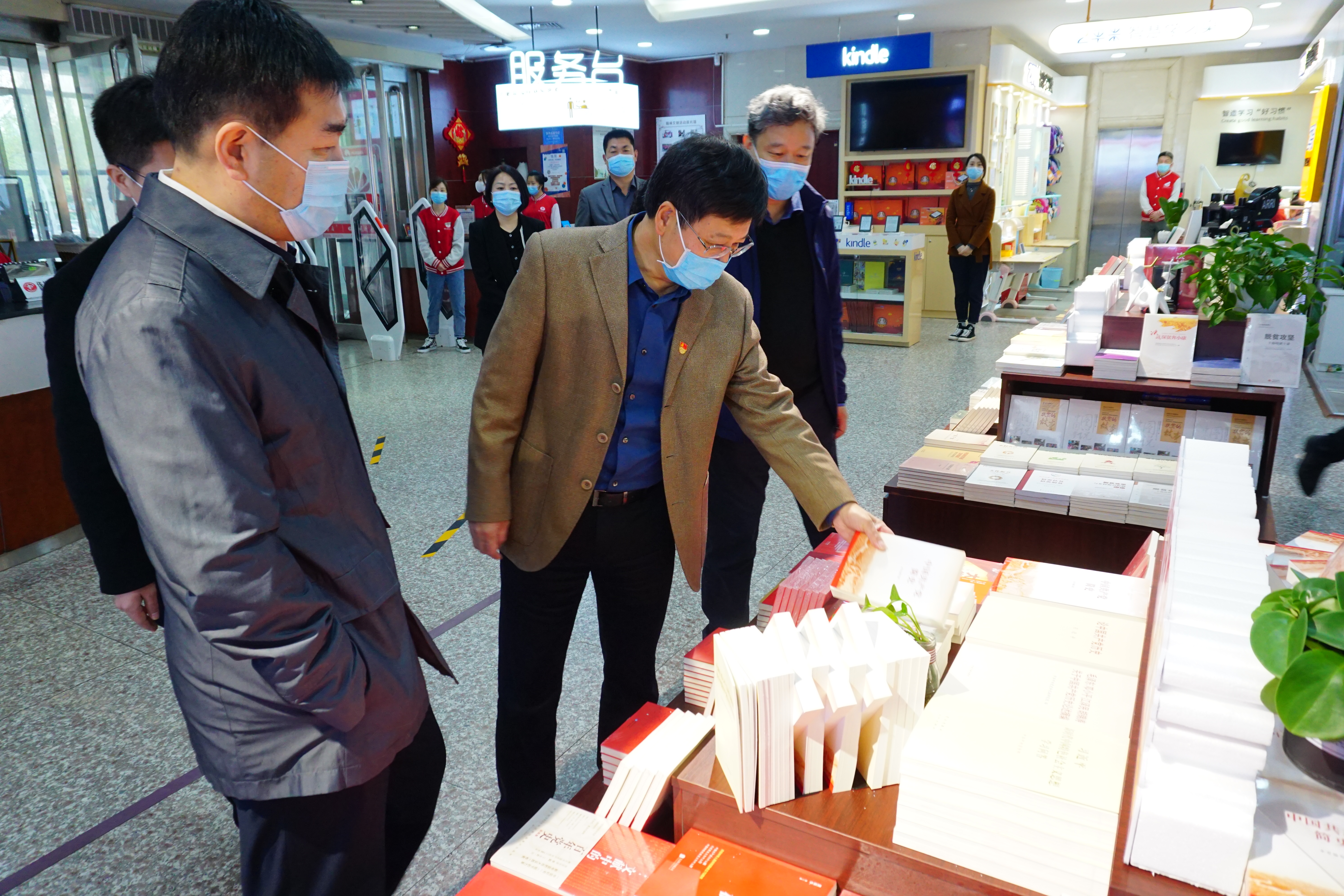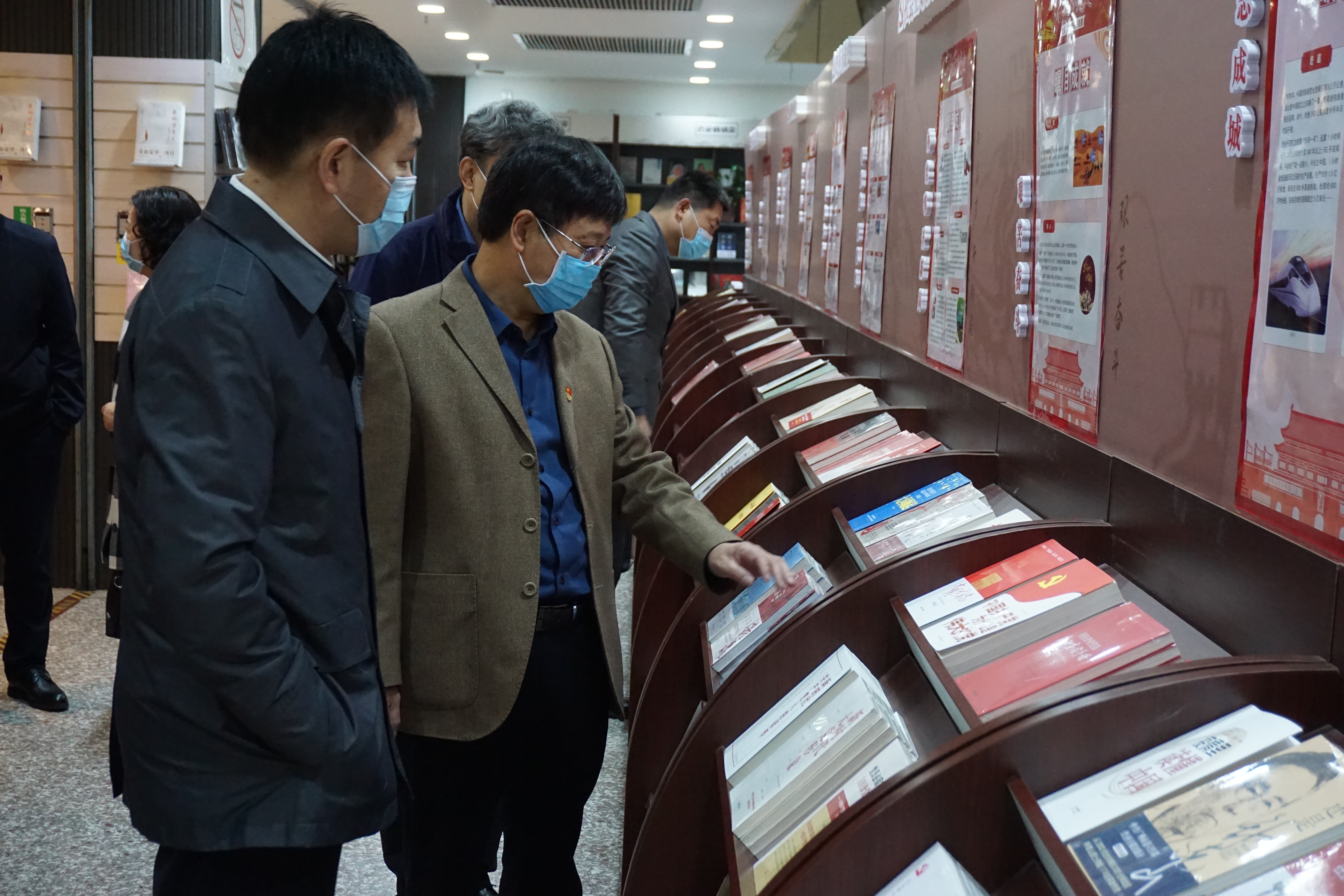 活動(dòng)期間,譚福森一行參觀了“慶祝中國(guó)共產(chǎn)黨成立100周年”主題書(shū)展。河南省新華書(shū)店作為黨的宣傳思想文化和意識(shí)形態(tài)的重要陣地,主動(dòng)融入全黨黨史學(xué)習(xí)教育,統(tǒng)籌線上線下渠道,重視宣傳發(fā)行工作,積極深入農(nóng)村、社區(qū)、學(xué)校、機(jī)關(guān)、企業(yè)、軍營(yíng)開(kāi)展學(xué)習(xí)圖書(shū)供應(yīng)服務(wù),實(shí)現(xiàn)了全省各地黨政機(jī)關(guān)黨員全覆蓋、基層黨組織全覆蓋和農(nóng)家書(shū)屋全覆蓋,推動(dòng)黨史學(xué)習(xí)教育深入基層、深入群眾、深入人心,為滿足全省人民學(xué)習(xí)需要做出了積極貢獻(xiàn)。