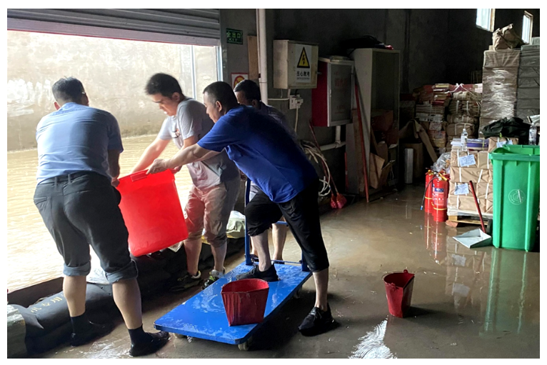 連日來,各地新華人齊上陣,想盡一切辦法,竭盡全力“搶救圖書教材”:冒雨鋪設抽水管道,赤膊上陣,雙手接力保教材……沒有什么能阻擋新華人搶救教材的步伐。