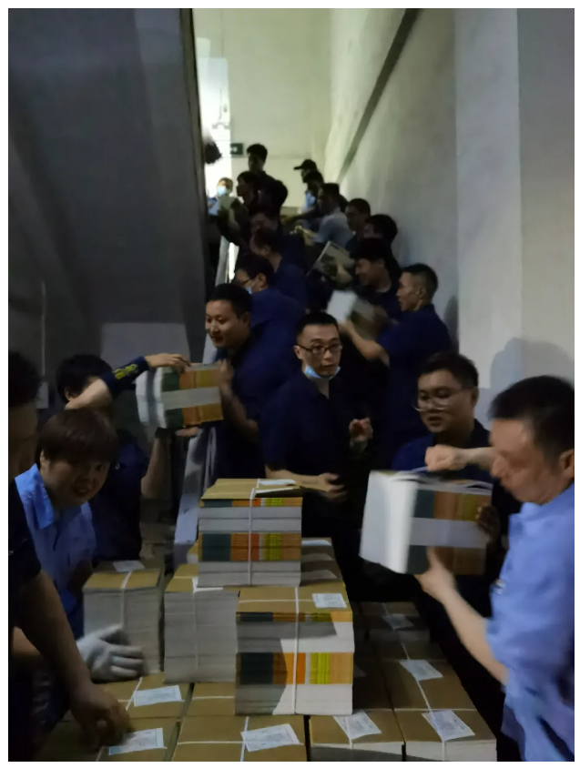 衛(wèi)輝市新華書店員工連夜將教材轉運到安全地方