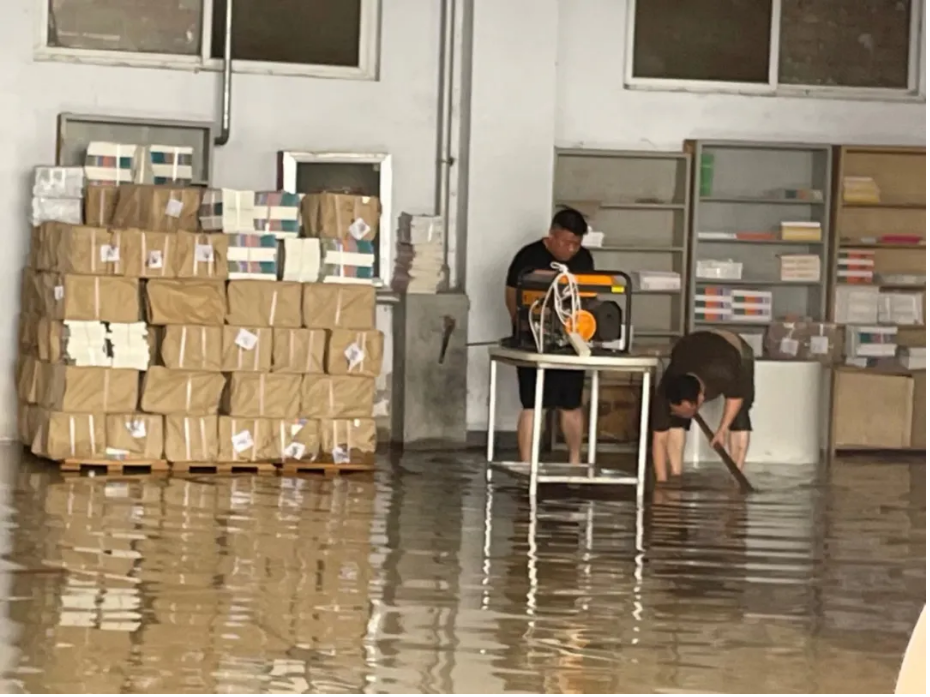 連續(xù)暴雨,大象出版社、河南電子音像出版社、河南印刷集團等冒雨緊急加固防汛沙堤,用沙袋駐防,或是往高處轉運圖書教材,或是動用大功率抽水機連續(xù)作業(yè)等,都積極采取應對措施控制災情,確保了庫存圖書教材安全。