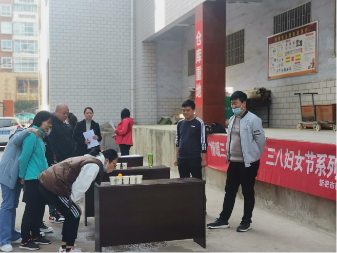 為迎接“三八婦女節(jié)”來(lái)臨,活躍節(jié)日氣氛,豐富職工的文化生活,增強(qiáng)職工的凝聚力。3月8日下午,新密市店組織開(kāi)展慶“三八”文體活動(dòng)。活動(dòng)有拔河比賽、吹乒乓球、跳繩、踢毽子、跳棋、象棋六個(gè)項(xiàng)目。