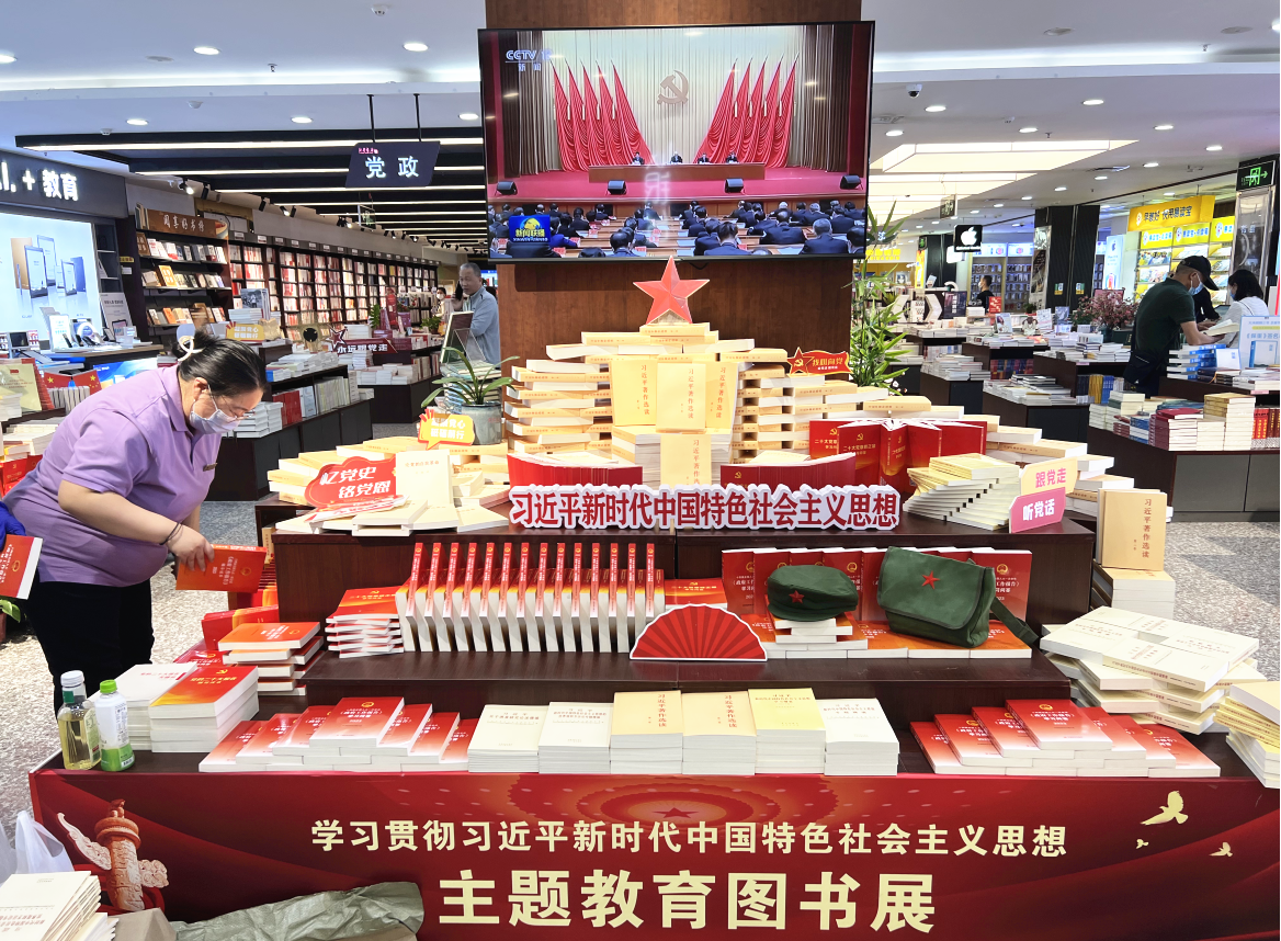 自學(xué)習(xí)貫徹習(xí)近平新時代中國特色社會主義思想主題教育開展以來,河南省新華書店緊扣服務(wù)主題教育主線,自覺扛穩(wěn)使命,主動服務(wù)大局,充分發(fā)揮黨的創(chuàng)新理論傳播主陣地、主渠道、主力軍作用,通過氛圍營造、場景優(yōu)化、活動開展、免費借閱等多種方式,傳承紅色基因、踐行文化使命。