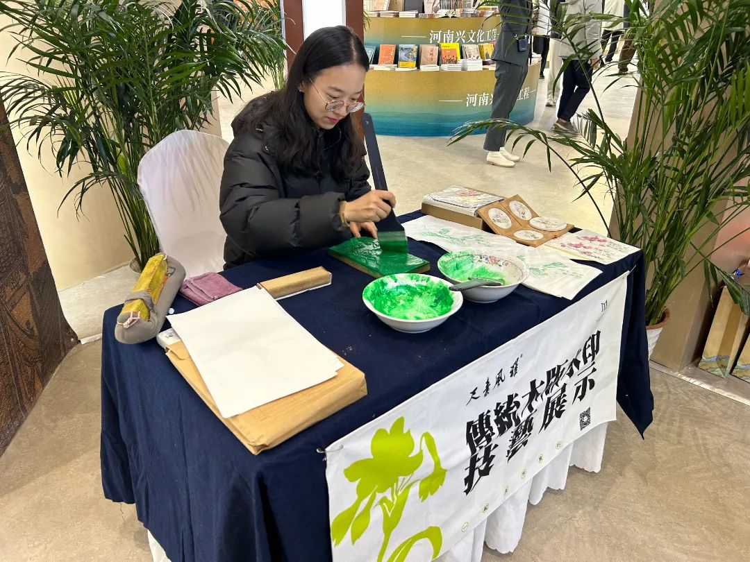 此次大會(huì)設(shè)置文脈書香展和河南古籍展。文脈書香展區(qū)整體采用“天圓地方、天地之中”的設(shè)計(jì)思路,設(shè)置了反映習(xí)近平新時(shí)代中國特色社會(huì)主義思想和黃河文化、興文化工程的圖書主題展區(qū),并以歷史為序,設(shè)置文脈傳承區(qū),包括“華夏曙光、漢唐輝煌、大宋夢(mèng)華、明清風(fēng)韻、紅色賡續(xù)”五大板塊,集中展示700種反映中華優(yōu)秀文化傳承創(chuàng)新的圖書。在五大主題板塊周邊設(shè)有豫版精品圖書展區(qū)和數(shù)字展區(qū),分別展示數(shù)百種豫版精品圖書,以及中原出版?zhèn)髅郊瘓F(tuán)的融合出版創(chuàng)新項(xiàng)目、文創(chuàng)產(chǎn)品等,同時(shí)還組織書法、拓印、掐絲琺瑯、《山海經(jīng)中國神獸圖鑒》AR沉浸式體驗(yàn)等多項(xiàng)互動(dòng)活動(dòng)。整個(gè)展區(qū)動(dòng)靜結(jié)合、虛實(shí)相融,既讓讀者和觀展群眾感受到良好的閱讀氛圍,又能感受到現(xiàn)代科技賦能的新場(chǎng)景、新體驗(yàn)。