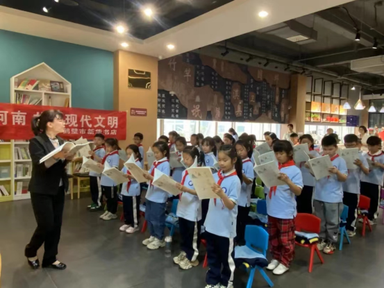 為切實帶動全省讀者在共話閱讀之美、分享思想盛宴、文化實踐結(jié)合、文旅融合轉(zhuǎn)化中,推進閱讀引領(lǐng)和文化吸引的影響力拓展至基層一線、各個領(lǐng)域,推動廣大讀者特別是青少年兒童群體理解文化、熱愛閱讀,多家書店策劃開展多層次、多品類的文旅閱讀融合活動。開封市店以《清明上河圖—宋朝的一天》為基礎(chǔ),開展開封書城沉浸式閱讀研學(xué)實踐活動;新鄉(xiāng)市店聯(lián)合新鄉(xiāng)市外國語小學(xué)師生,創(chuàng)作并展演課間劇《開學(xué)第一天》;洛陽市店以書為紐帶,結(jié)合洛陽深厚的歷史文化底蘊和獨特的城市魅力,舉行集書香、文化、旅游于一體的盛宴,連接起愛讀書、愛生活的讀者朋友;信陽市店圍繞大別山革命精神傳承宣傳,融合紅色文化和閱讀文化,為當(dāng)?shù)匚幕叩亟ㄔO(shè)和城市精神文明創(chuàng)建工作作出創(chuàng)新探索。