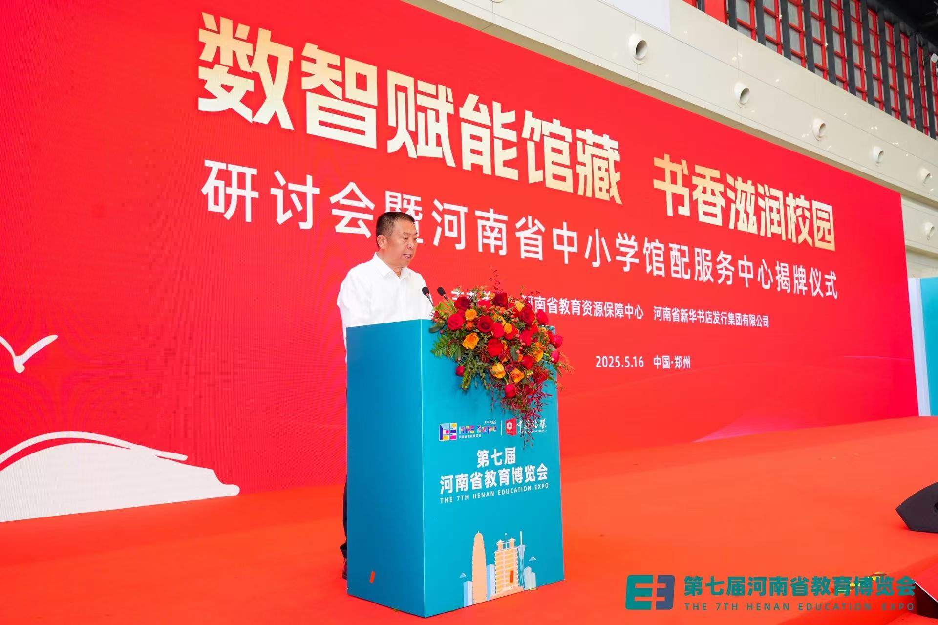 5月16日,第七屆河南省教育博覽會(huì)開(kāi)幕當(dāng)天,“數(shù)智賦能館藏·書(shū)香滋潤(rùn)校園”研討會(huì)暨河南省中小學(xué)館配服務(wù)中心揭牌儀式在鄭州舉行。省教育資源保障中心主任孫家棟、省新華書(shū)店發(fā)行集團(tuán)相關(guān)領(lǐng)導(dǎo)出席活動(dòng)并講話(huà)。