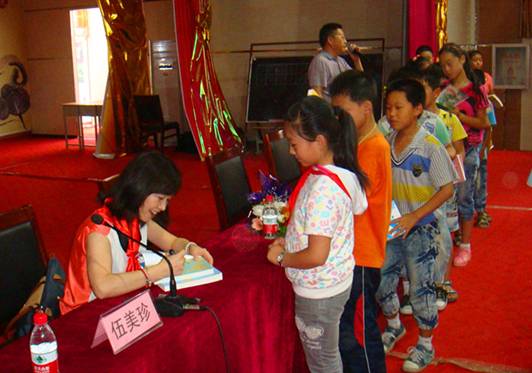 伍美珍被稱為“陽(yáng)光姐姐”,她曾是“陽(yáng)光姐姐熱線”主持人,專為小讀者排憂解難。自2000年起,她在內(nèi)地和港臺(tái)三地共出版了70余部少兒題材的小說(shuō)和報(bào)告文學(xué)作品,曾獲文化部“蒲公英少兒讀物獎(jiǎng)”及新聞出版總署“全國(guó)優(yōu)秀少兒圖書獎(jiǎng)”“冰心兒童圖書獎(jiǎng)”等。為了開(kāi)展好本次活動(dòng),切實(shí)通過(guò)名家效應(yīng)提升新華品牌,拉動(dòng)一般書銷售,發(fā)行集團(tuán)公司非常重視本次巡講活動(dòng)的方案策劃、行程安排、具體落實(shí)等方面工作,早在6月份就已經(jīng)推出了方案細(xì)則,后又經(jīng)過(guò)多次與基層書店、出版社以及伍美珍本人的溝通商量,最終保證了伍美珍校園巡講簽售活動(dòng)的圓滿舉辦。
