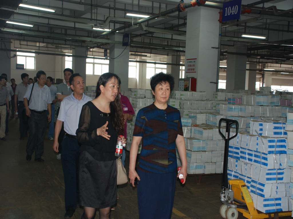 8月6日,中原出版?zhèn)髅郊瘓F(tuán)公司董事長(zhǎng)、黨委書(shū)記王愛(ài),中原出版?zhèn)髅郊瘓F(tuán)公司副總裁、中原大地傳媒股份公司總經(jīng)理郭豫生,副總經(jīng)理王慶國(guó)、高燦華等一行來(lái)到河南出版物流配送中心,視察指導(dǎo)發(fā)行集團(tuán)2014秋教材教輔發(fā)運(yùn)工作。發(fā)行集團(tuán)班子成員陪同視察。