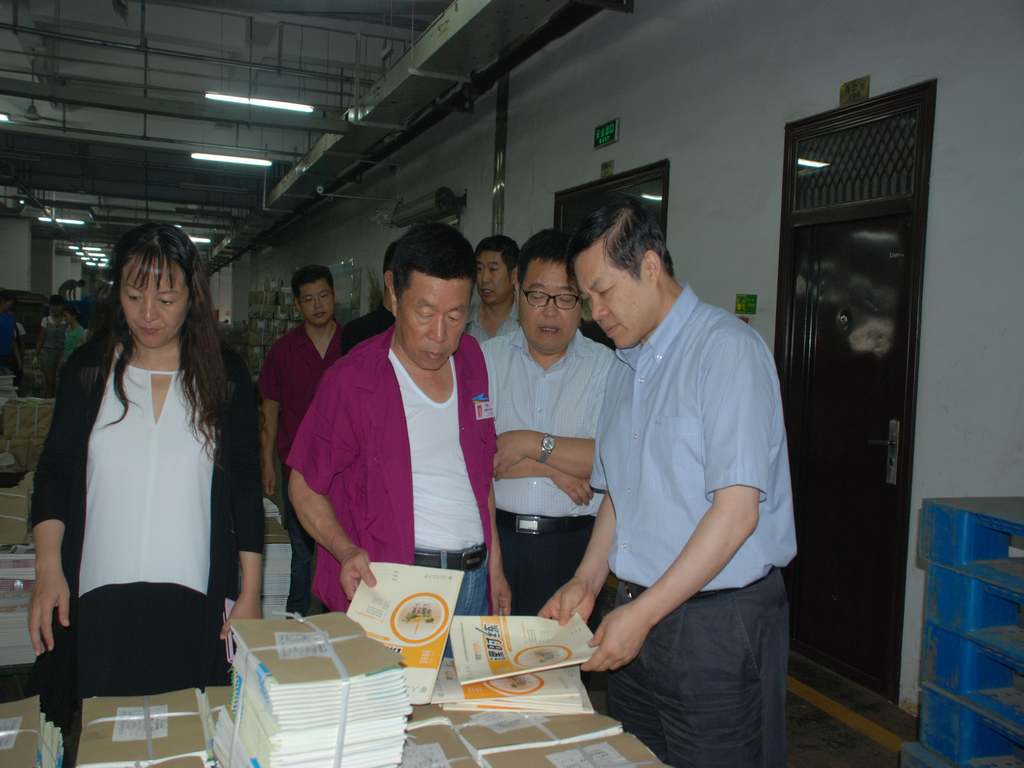 李永臻總裁首先到物流中心一樓教材教輔配發(fā)倉(cāng)庫(kù),對(duì)今年秋季教材教輔的整體配發(fā)進(jìn)度進(jìn)行詳細(xì)了解,并對(duì)教材教輔的印裝質(zhì)量進(jìn)行了抽樣檢測(cè)。在包裝工作臺(tái)旁,李總裁還就每臺(tái)機(jī)組的包裝速度、包裝材料質(zhì)量進(jìn)行了深入詢問(wèn)。當(dāng)了解到教材教輔都能按計(jì)劃完成配送任務(wù)時(shí),李總裁充分肯定了發(fā)行集團(tuán)在確保發(fā)運(yùn)工作平穩(wěn)有序高效運(yùn)行方面做出的巨大努力。在檢查過(guò)程中,發(fā)行集團(tuán)就有關(guān)配發(fā)情況,以及各環(huán)節(jié)協(xié)調(diào)、人員組織包括青年突擊隊(duì)等方面的情況進(jìn)行了系統(tǒng)匯報(bào)。